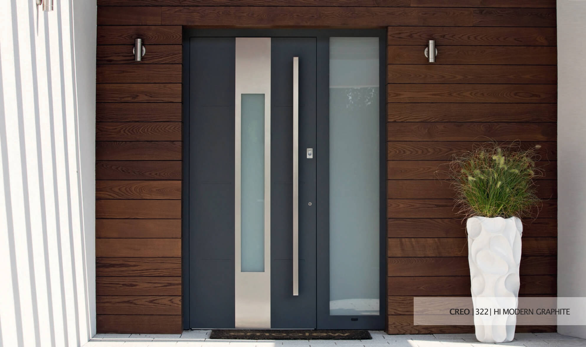 Unsere optisch ansprechenden und im Design an Zaun und Garagentor orientierte Haustüren sorgen für Sicherheit, optional auch mit Fingerprint, Motorschloss und Gadgets der neusten Generation.